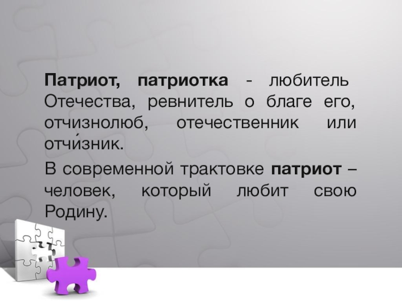 Патриотизм – в переводе с греческого, означает любовь к Родине, преданность
