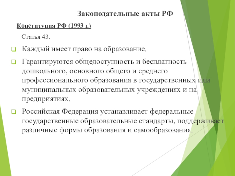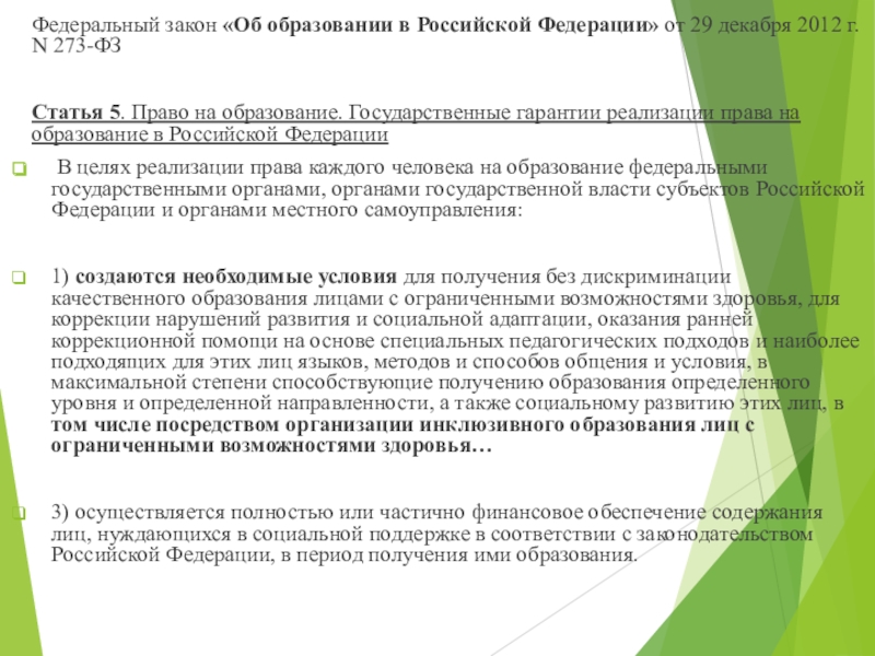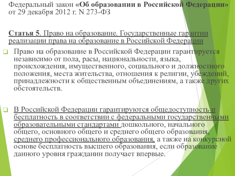 Статья 5. Право на образование. Государственные гарантии реализации права на образование в Российской Федерации