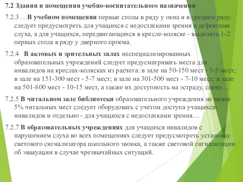 Слайд 207.2 Здания и помещения учебно-воспитательного назначения