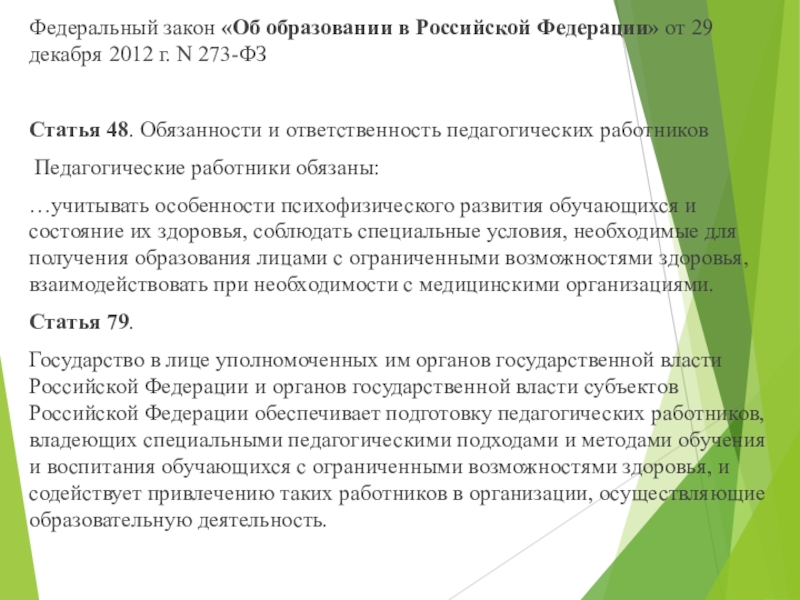 Слайд 10Федеральный закон «Об образовании в Российской Федерации» от 29 декабря 2012 г.