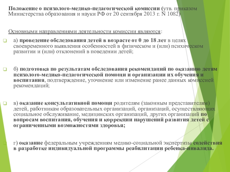 Слайд 22Положение о психолого-медико-педагогической комиссии (утв. приказом Министерства образования и науки РФ