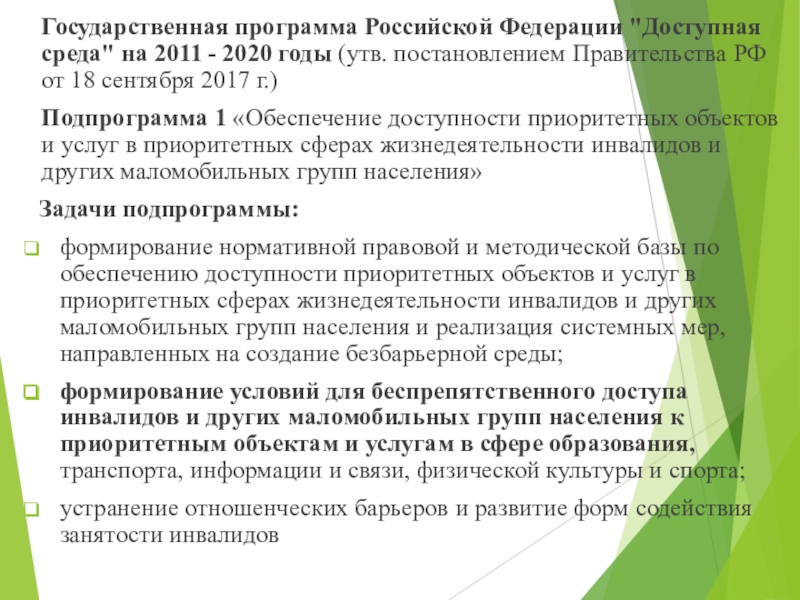 Слайд 17Государственная программа Российской Федерации "Доступная среда" на 2011 - 2020 годы