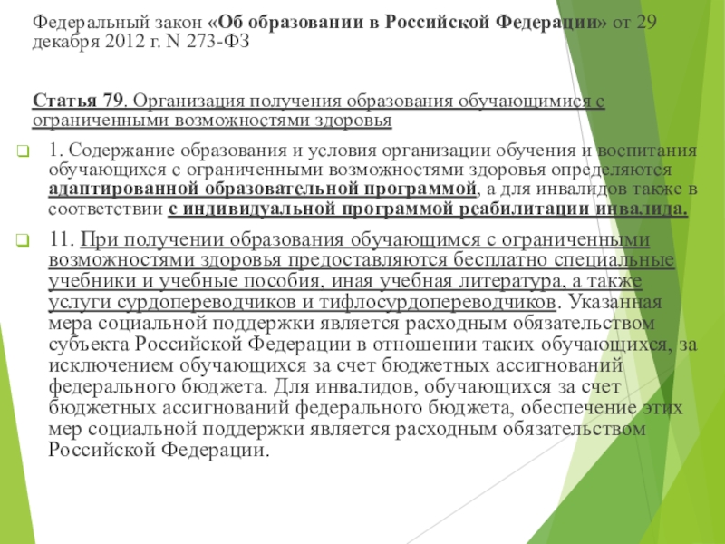Слайд 11Федеральный закон «Об образовании в Российской Федерации» от 29 декабря 2012 г.