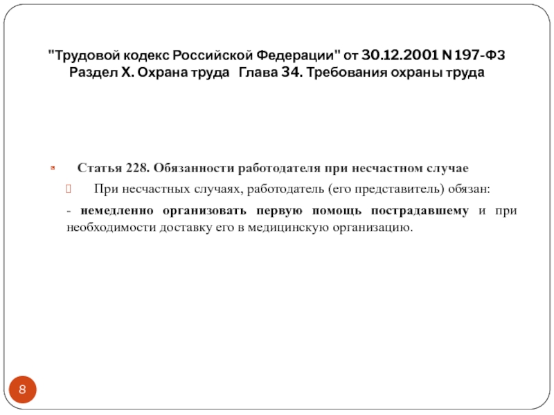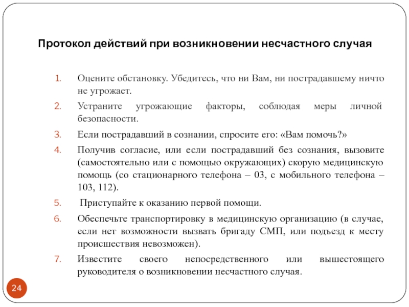 - немедленно организовать первую помощь пострадавшему и при необходимости доставку его в медицинскую организацию.