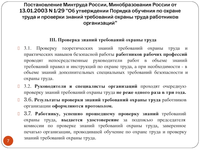 3.2. Руководители и специалисты организаций проходят очередную проверку знаний требований охраны труда не реже одного раза в три года.