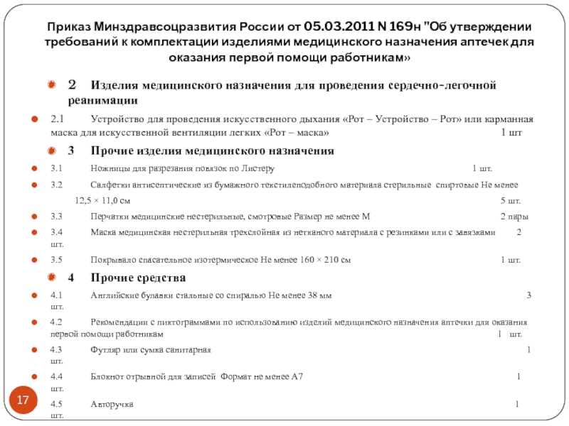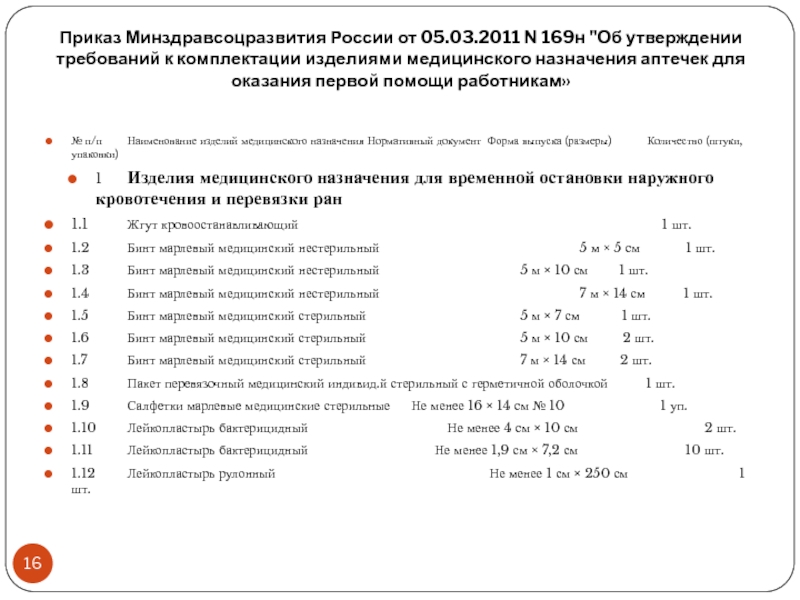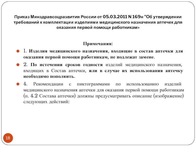 1. Изделия медицинского назначения, входящие в состав аптечки для оказания первой помощи работникам, не подлежат замене.