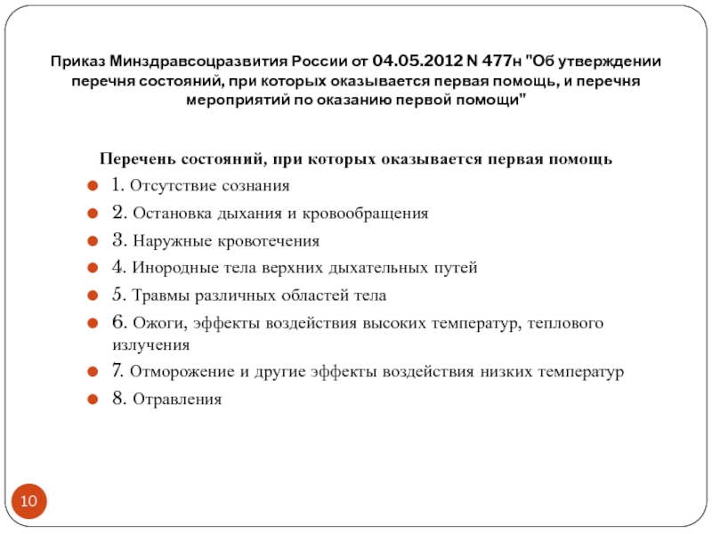 1. Первая помощь до оказания медицинской помощи оказывается гражданам при несчастных случаях, травмах, отравлениях и других состояниях и заболеваниях, угрожающих их жизни и здоровью, лицами, обязанными оказывать первую помощь в соответствии с федеральным законом или со специальным правилом и имеющими соответствующую подготовку, в том числе сотрудниками органов внутренних дел РФ, сотрудниками, военнослужащими и работниками Государственной противопожарной службы, спасателями аварийно-спасательных служб.
