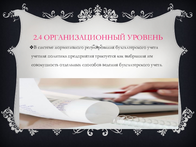 2.4 Организационный уровеньВ системе нормативного регулирования бухгалтерского учета учетная политика предприятия трактуется как выбранная им совокупность