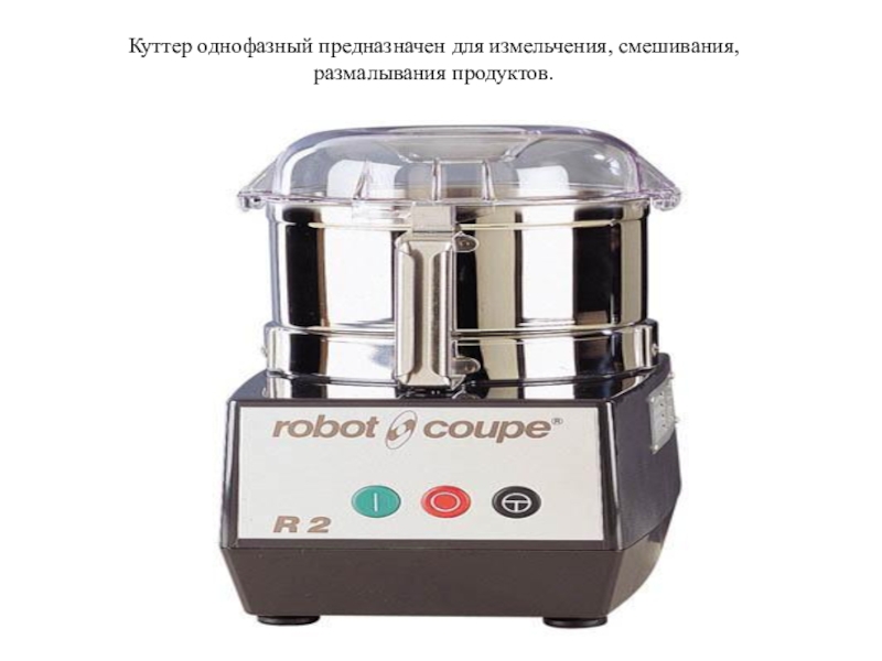 Слайд 85Куттер однофазный предназначен для измельчения, смешивания, размалывания продуктов.