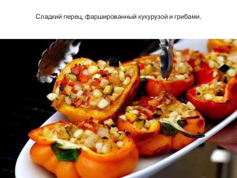 Слайд 35Сладкий перец, фаршированный кукурузой и грибами.