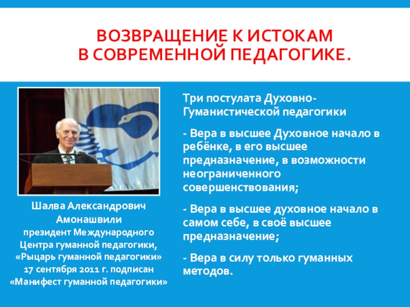 17 сентября 2011 г. подписан «Манифест гуманной педагогики»