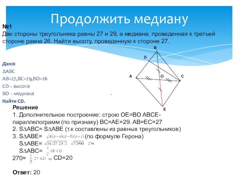 Две стороны треугольника равны 27 и 29, а медиана, проведенная к третьей