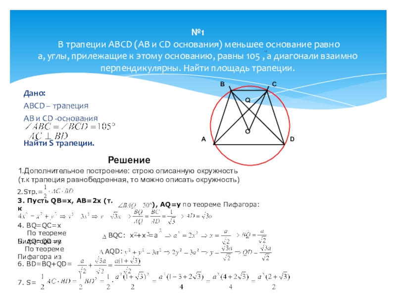 Найти высоту равнобедренной трапеции, если её диагонали взаимно перпендикулярны, а площадь трапеции равна S.