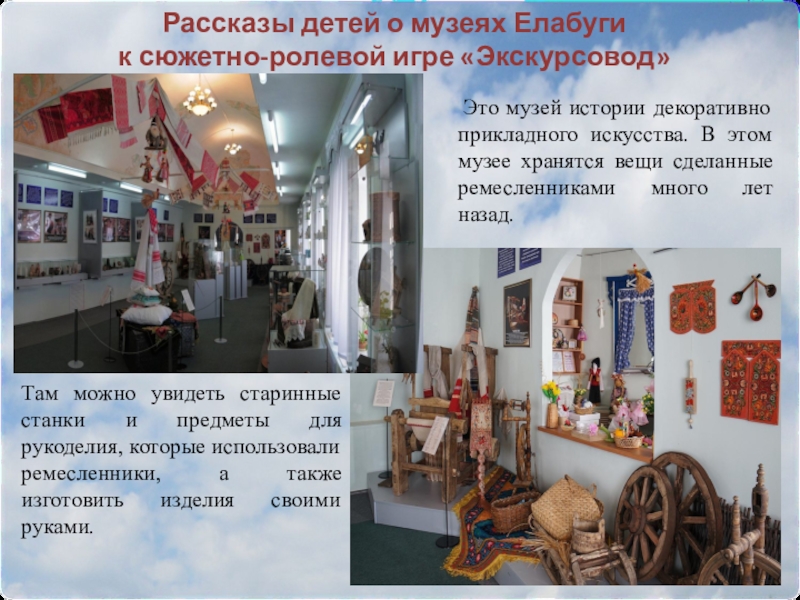 Там можно увидеть старинные станки и предметы для рукоделия, которые использовали ремесленники, а также изготовить изделия своими руками.