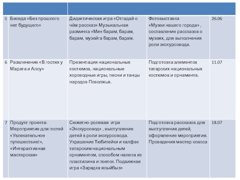 Нравственно-патриотическое воспитание детей старшего дошкольного возраста, привитие чувства ответственности и гордости за достижения Родины, желания сохранить и приумножить богатства родного края способствовать развитию чувства принадлежности к мировому сообществу. Приобщение детей к татарскому языку, истории, этнокультуре, духовным ценностям родного края.