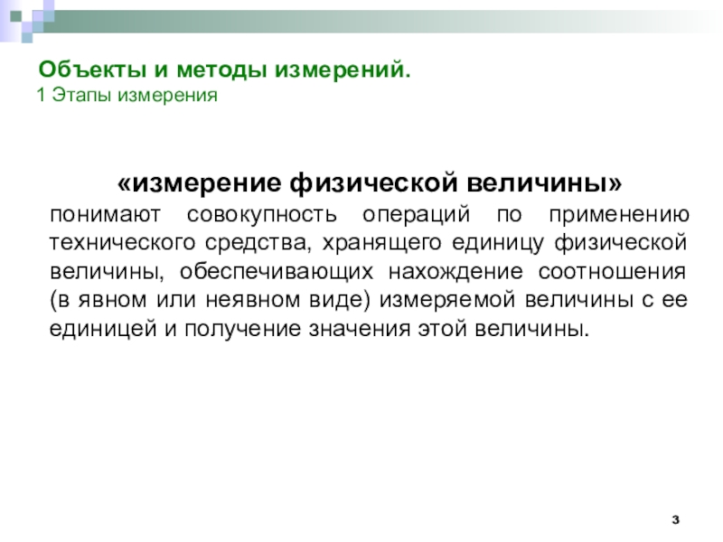Измерение требует проведения опытов (теоретические рассуждения и расчет не могут заменить эксперимента);