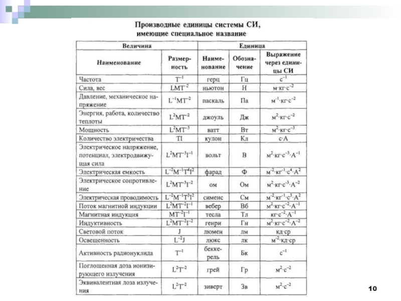 Для образования наименований десятичных кратных и дольных единиц используются соответствующие приставки.