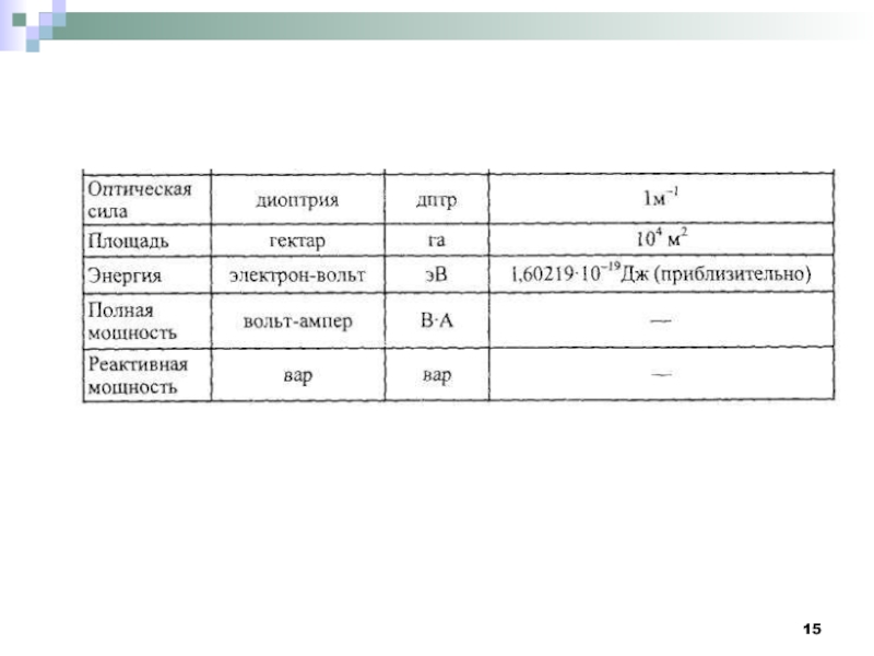 устаревшие (не допускаемые) (мм. рт. ст., лошадиная сила и т.д.).