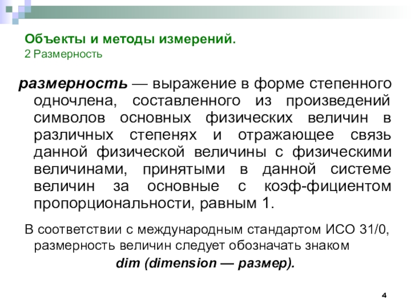 составленного из произведений символов основных физических величин в различных степенях и отражающее связь данной физической величины с физическими величинами, принятыми в данной системе величин за основные с коэф-фициентом пропорциональности, равным 1.