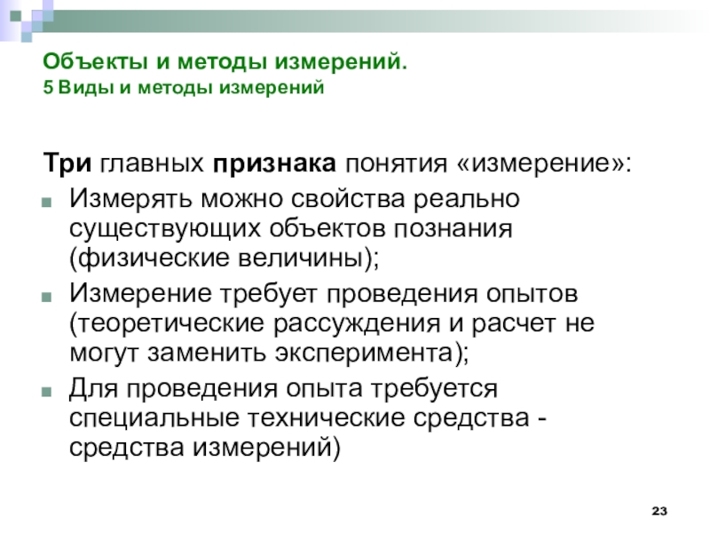 Измерять можно свойства реально существующих объектов познания (физические величины);