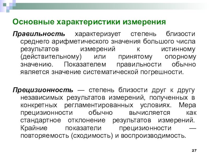 результатов измерений к истинному (действительному) или принятому опорному значению. Показателем правильности обычно является значение систематической погрешности.