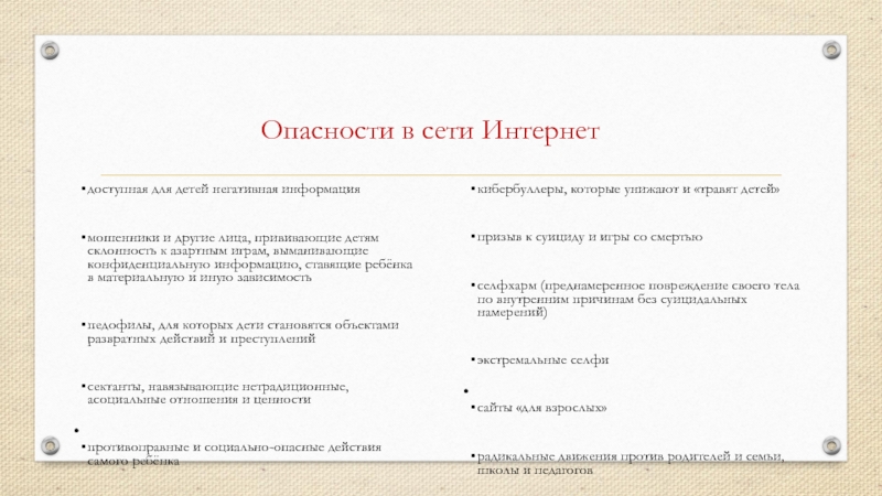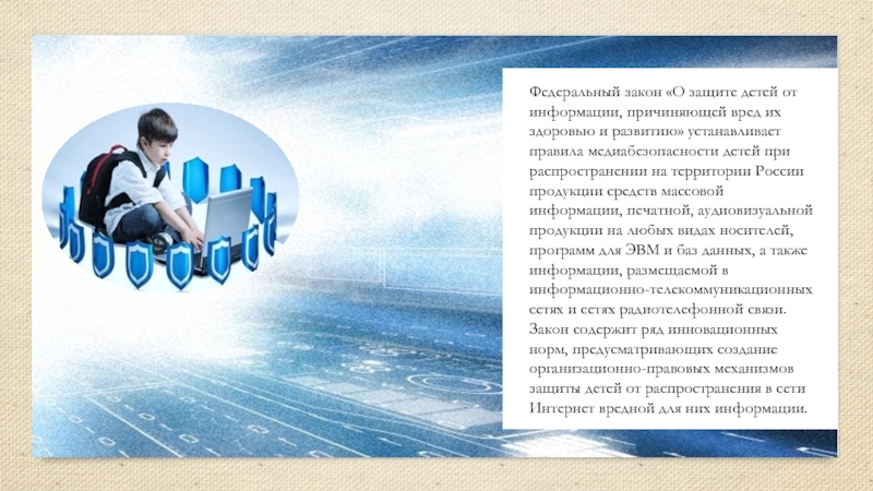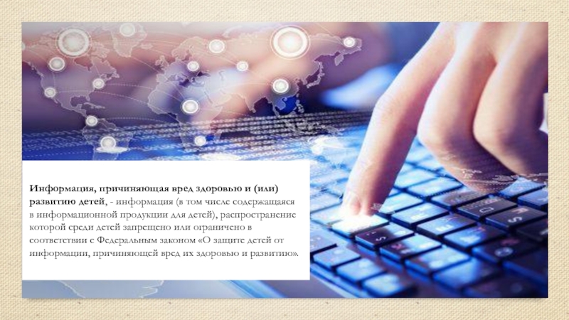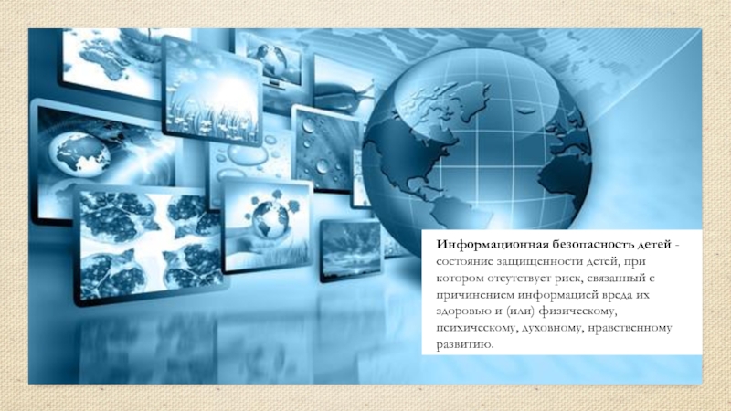 Информационная безопасность детей - состояние защищенности детей, при котором отсутствует риск, связанный с причинением информацией вреда их здоровью и (или) физическому, психическому, духовному, нравственному развитию.