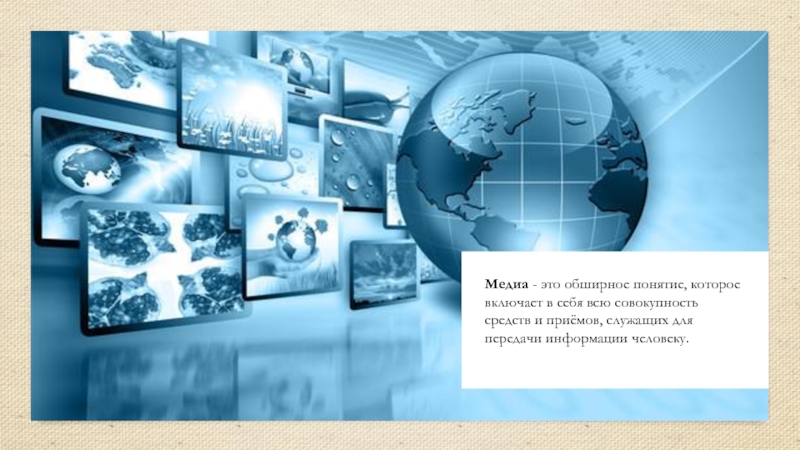 Медиа - это обширное понятие, которое включает в себя всю совокупность средств и приёмов, служащих для передачи информации человеку.
