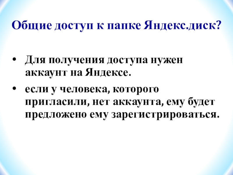 Слайд 9Общие доступ к папке Яндекс.диск?