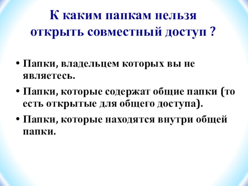 Слайд 8К каким папкам нельзя открыть совместный