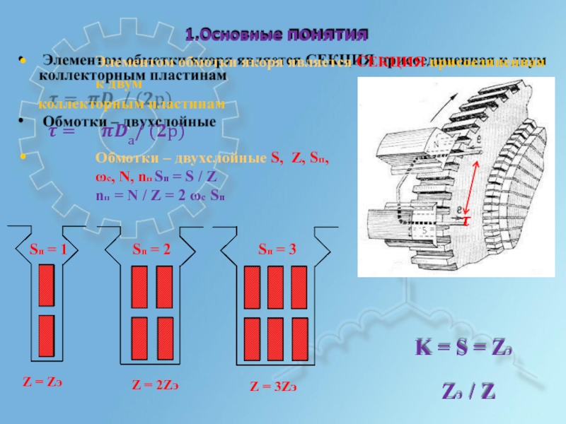 Шаги по якорю выражаются в элементарных пазах.