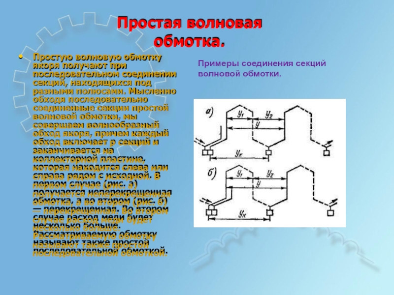 Примеры соединения секций волновой обмотки.