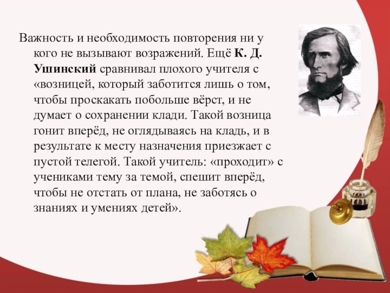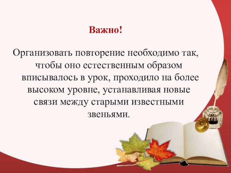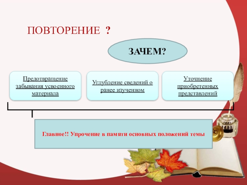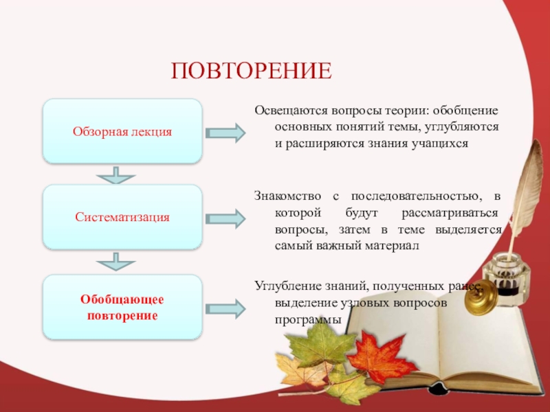 Углубление знаний, полученных ранее, выделение узловых вопросов программы