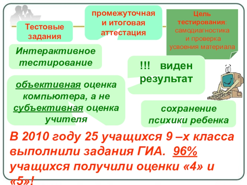 В 2010 году 25 учащихся 9 –х класса выполнили задания ГИА. 96% учащихся получили оценки «4» и «5»!