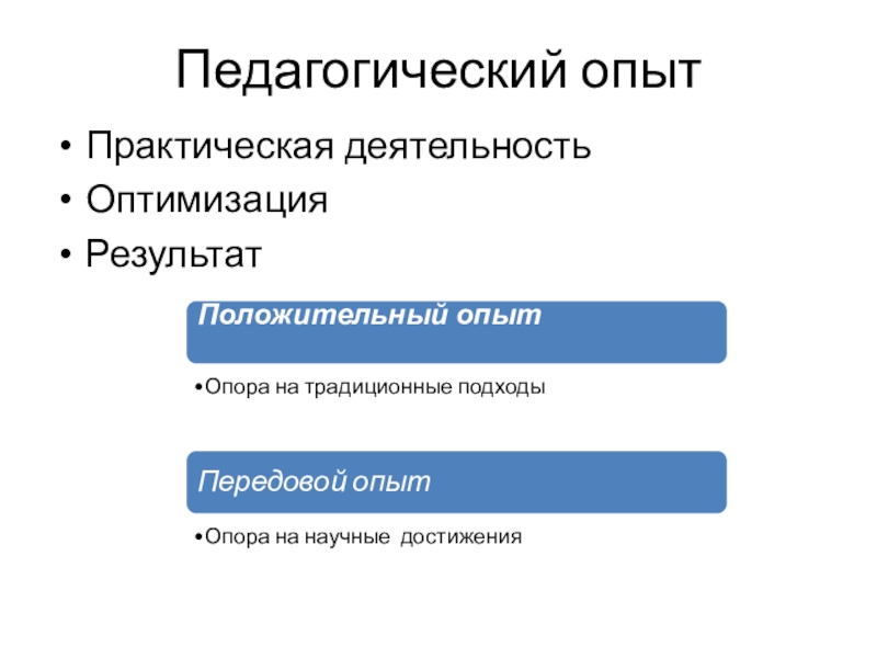 Педагогический опыт Практическая деятельность Оптимизация Результат