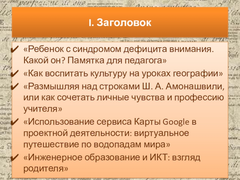 Слайд 10I. Заголовок