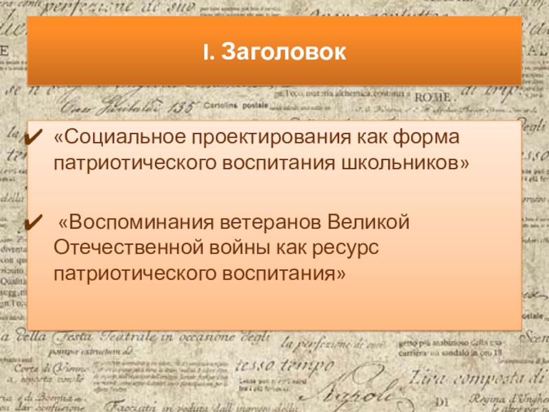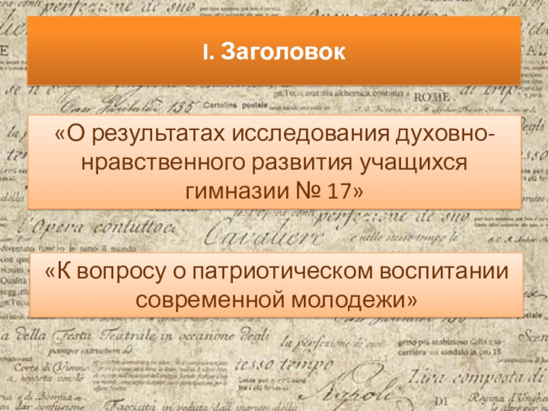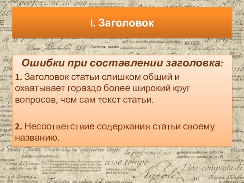 Слайд 8I. Заголовок