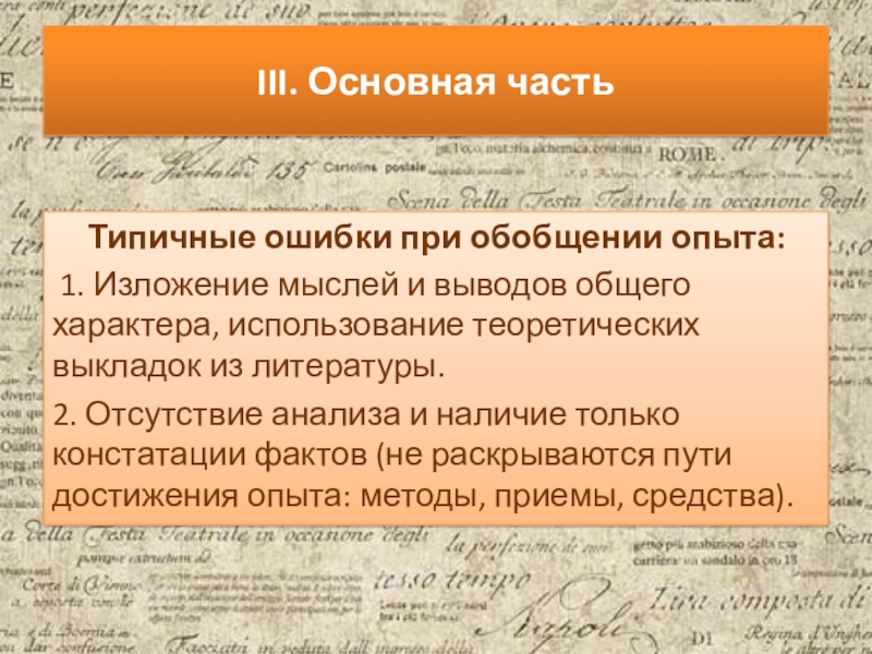 Типичные ошибки при обобщении опыта: