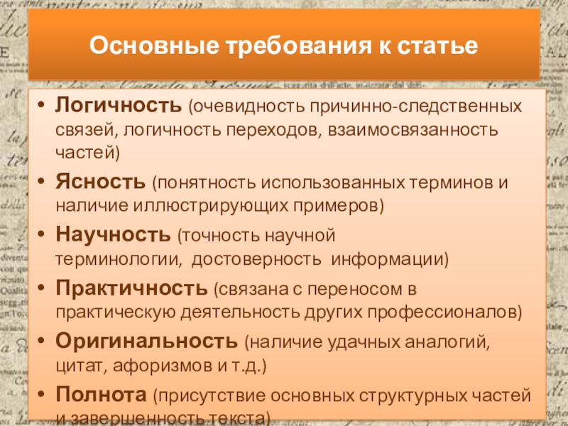 Слайд 21Основные требования к статье