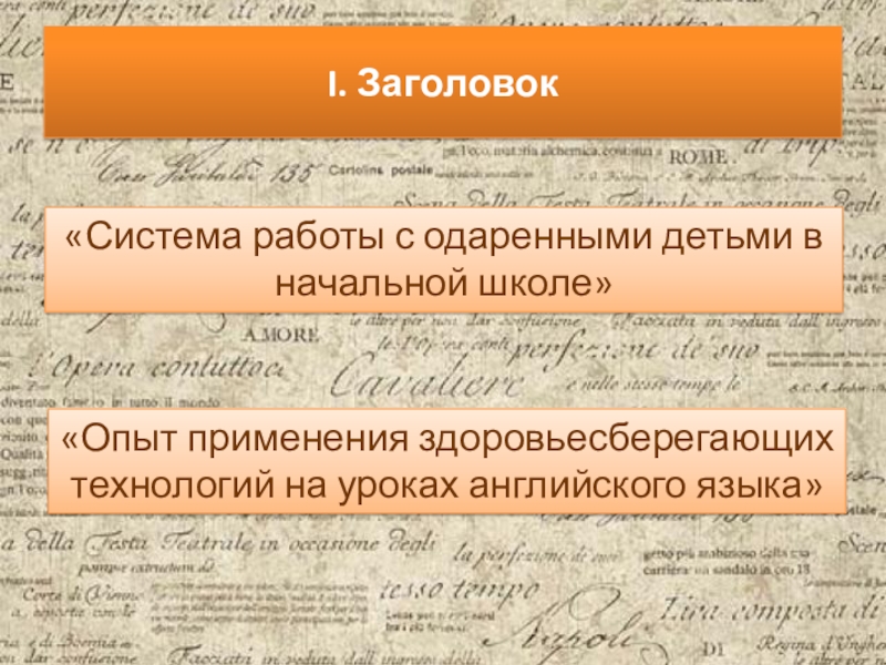 Слайд 11I. Заголовок