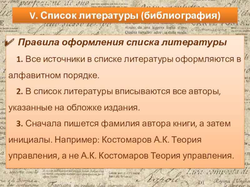Слайд 19V. Список литературы (библиография)