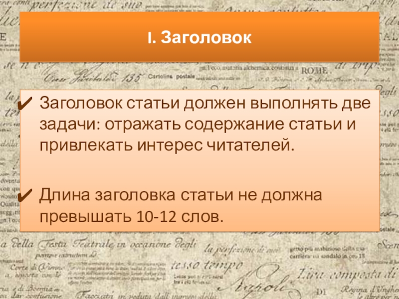Заголовок статьи должен выполнять две задачи: отражать содержание статьи и
