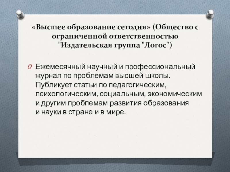 Слайд 6«Высшее образование сегодня» (Общество с ограниченной ответственностью "Издательская группа "Логос")