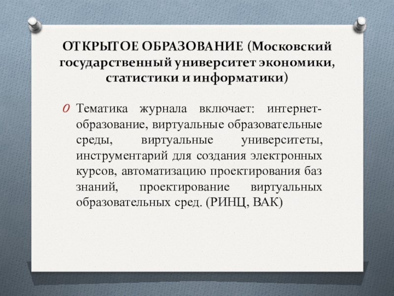 Слайд 4ОТКРЫТОЕ ОБРАЗОВАНИЕ (Московский государственный университет экономики, статистики и информатики)
