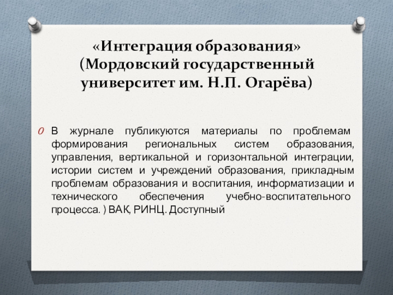 Слайд 7«Интеграция образования» (Мордовский государственный университет им. Н.П. Огарёва)