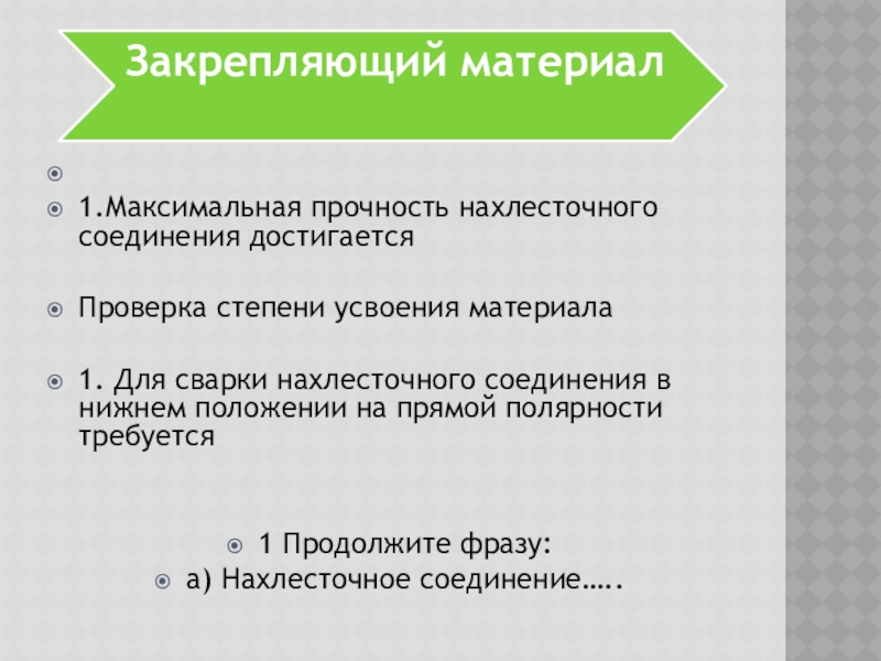 Слайд 91.Объясните принцип сварки в нижнем положении сварного шва