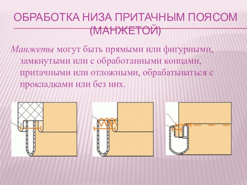 Обработка низа притачным поясом (манжетой) Манжеты могут быть прямыми или фигурными, замкнутыми или с обработанными концами, притачными или