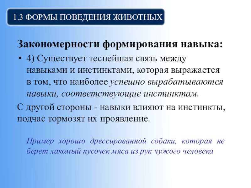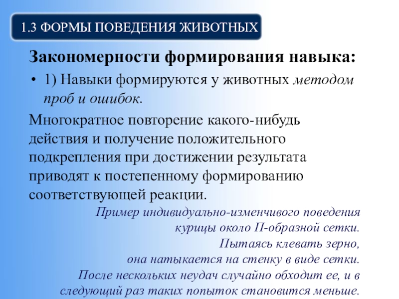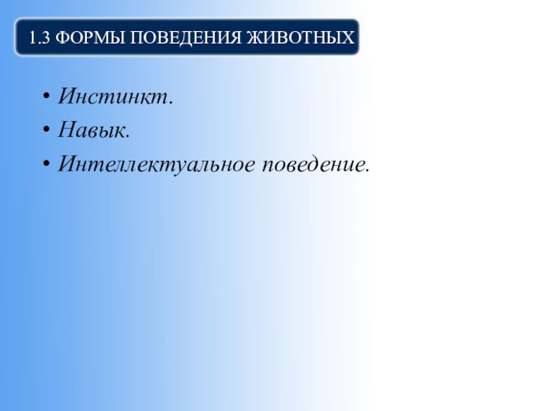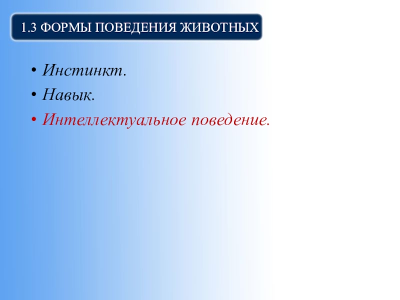 1.3 Формы поведения животных: инстинкт, навык, интеллект.