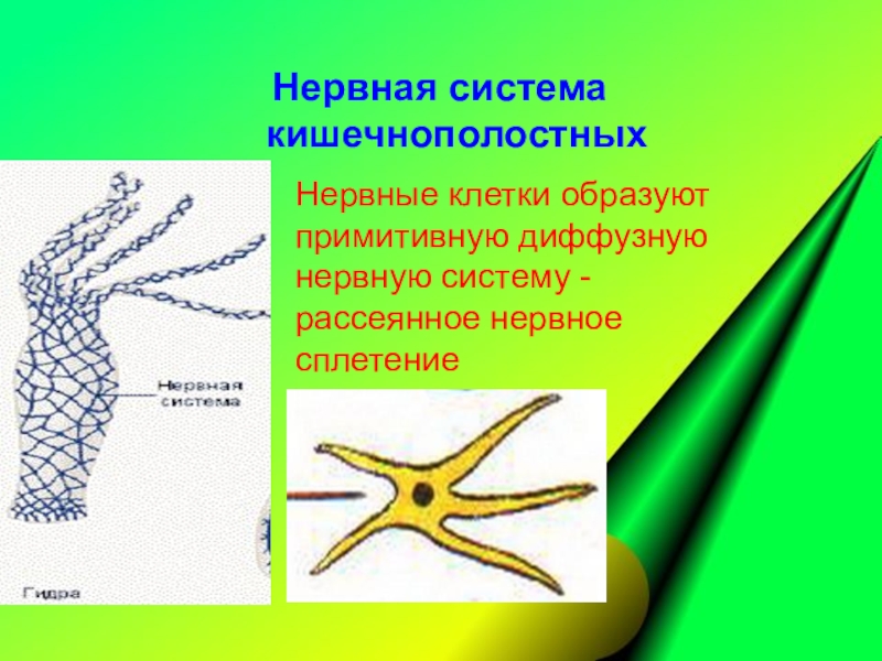 Слайд 14Нервные клетки образуют примитивную диффузную нервную систему - рассеянное нервное сплетение