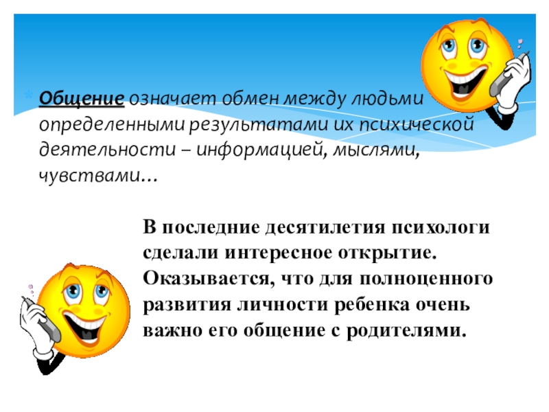 В последние десятилетия психологи сделали интересное открытие. Оказывается, что для полноценного развития личности ребенка очень важно его общение с родителями.