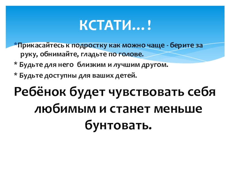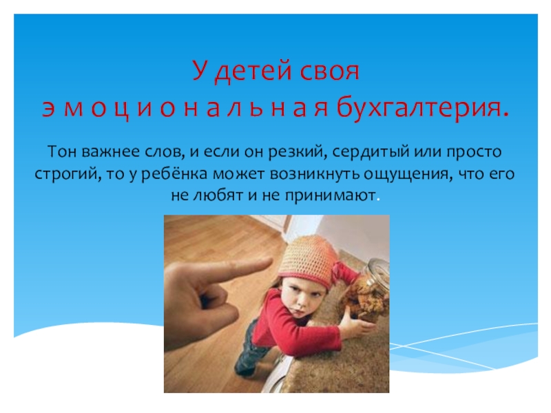 Тон важнее слов, и если он резкий, сердитый или просто строгий, то у ребёнка может возникнуть ощущения, что его не любят и не принимают.